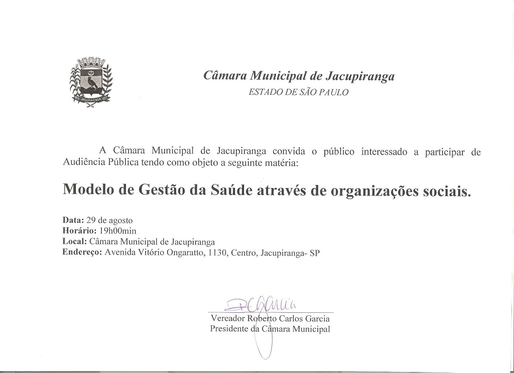AUDIÊNCIA PÚBLICA – Modelo de Gestão da Saúde através de Organizações Sociais |