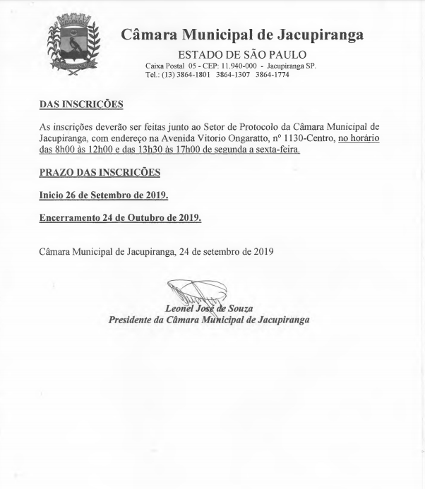 Jacupiranga, segunda-feira, 08 de dezembro de 2025 Telefone (13) 3864-1801 / 1774