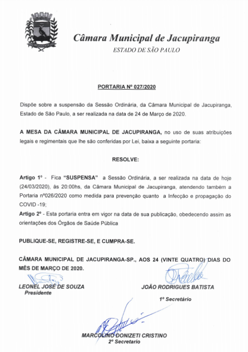 Jacupiranga, segunda-feira, 08 de dezembro de 2025 Telefone (13) 3864-1801 / 1774