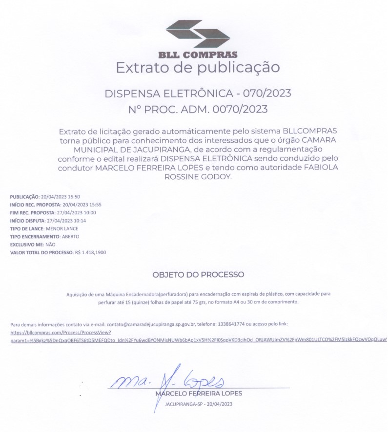 Aviso de Licitação – Nº 070/2023