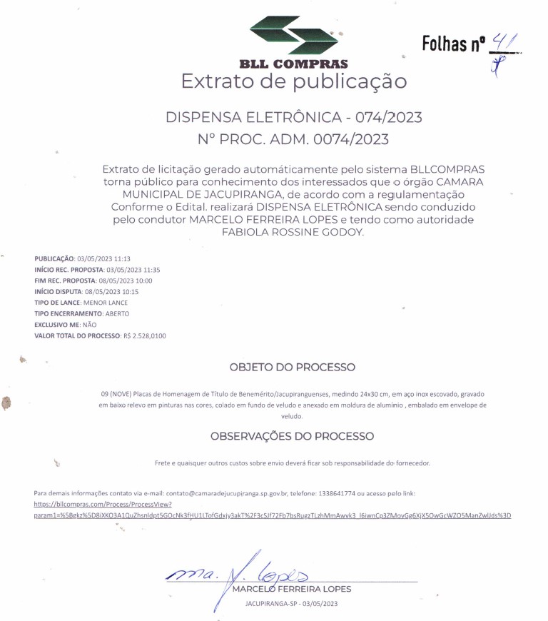 CNPJ: 71.553.309/0001-57Razão Social: Câmara Municipal de JacupirangaNome Fantasia: Câmara Municipal de Jacupiranga